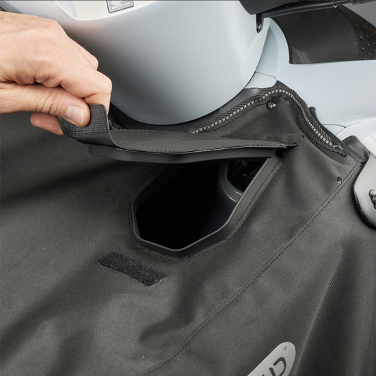 - Couvre–selle rangé dans la poche du plastron