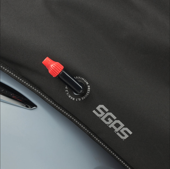- Adaptateur S.G.A.S. fourni pour gonfler avec la bouche ou une pompe : rend le gonflage hygiénique et évite la sortie d’air pendant la fermeture de la valve