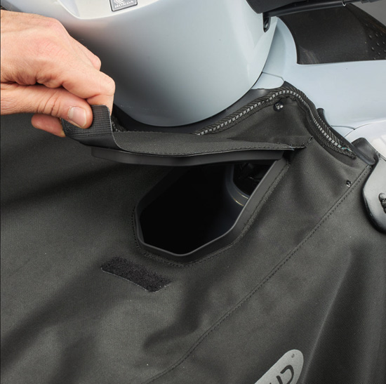 - Couvre–selle rangé dans la poche du plastron