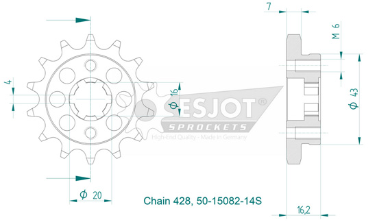 - Pignon ajouré pour plus de légèreté et denture auto nettoyante.